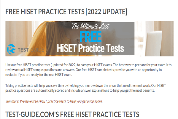 Access these free practice tests anytime in order to prepare for your HiSET exam.