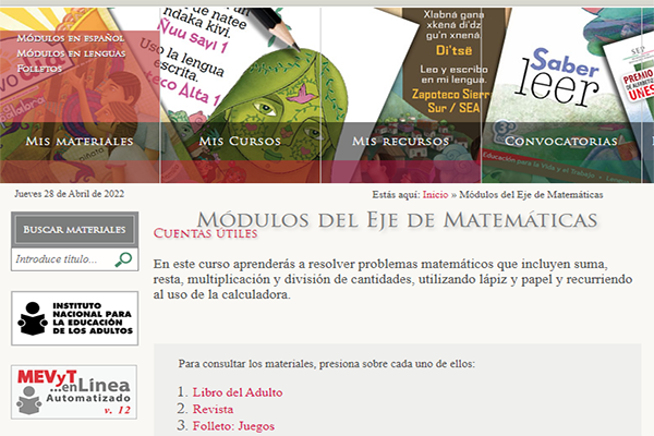 Free Math course materials from the Mexican government available to adults.
