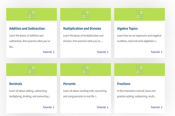 Learn any math skill you would like through these interactive tutorials.