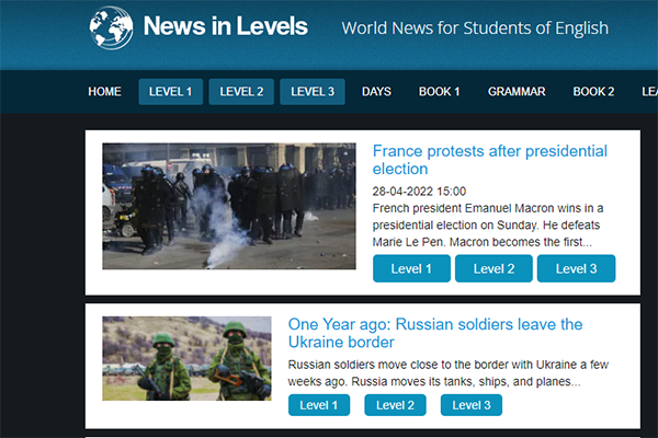 Pick your reading level and read current news articles.